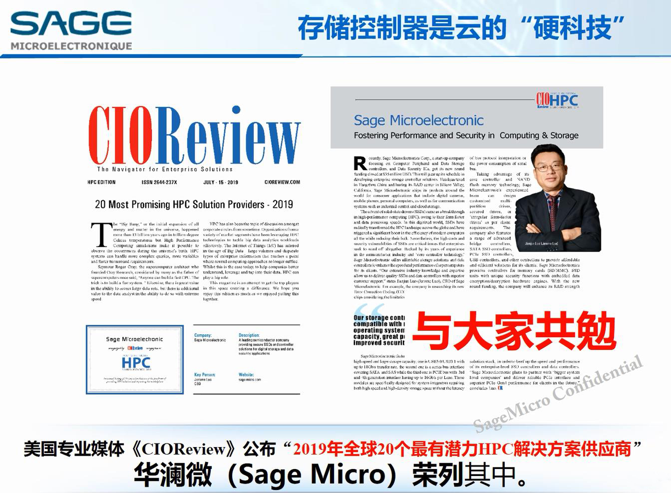 駱總在總結中提到,存儲控制器技術是大數據、云存儲技術的硬科技和基礎,是徹底解決存儲卡脖子技術難題的重要環節,存儲控制器技術需要多年持之以恒的技術積累,更需要存儲產業界不斷的推動和應用,華瀾微有幸被“CIO Review“評為2019年度和本年度HPC(High Performance Computing高性能計算)的國內代表企業。華瀾微希望在應用大潮中能與眾多國內外優秀同行業一起前進,能有更多的國內同行能夠和華瀾微并肩作戰,實現更好的中國存儲美好未來。